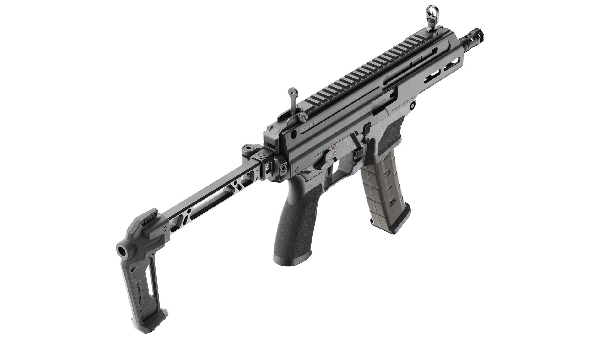 - Construction: Features a machined lightweight alloy receiver paired with a reinforced polymer grip and a side-folding/extendable buttstock.