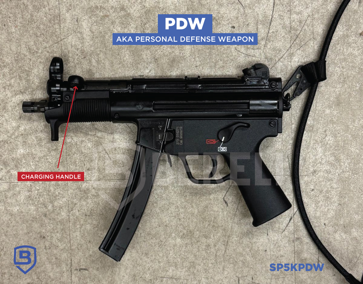 PDWs are ultra-compact firearms originally designed for close-quarters combat — sometimes chambered in intermediate rounds, but often also in 9mm. These are the kind of weapons used in plain-clothes missions for their compactness yet stronger-than-handgun reliability.